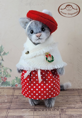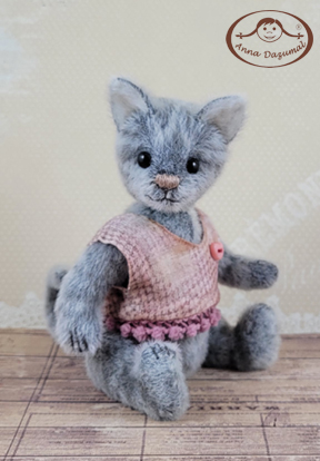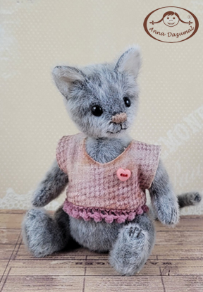 This is amazing Cat Holly, made of Long Pile in 2 amazing colors: main in grey, the inner ears are white. She has black German glass eyes and a stitched nose. Filling: Fiber fill and steel pellets for a better weight, 5 way jointed. The tail is wired and bendable.