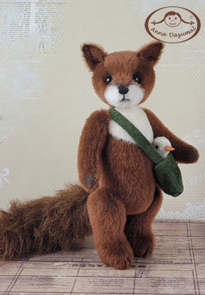 This is Fox Filus, my newest creation. He´s made of Long Pile in 2 amazing colors: main in redbrown and the muzzle is white. He has black German glass eyes and a stitched nose. Filling: Fiber fill and steel pellets for a better weight, 5 way jointed. The tail is wired and bendable. So he can stand alone.