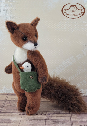 This is Fox Odette, my newest creation. She´s made of Long Pile in 2 amazing colors: main in redbrown and the muzzle is white. She has black German glass eyes and a stitched nose. Filling: Fiber fill and steel pellets for a better weight, 5 way jointed. The tail is wired and bendable. So she can stand alone.