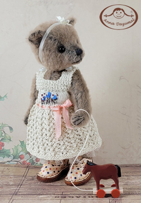 In 1992 I started with the label Anna Dazumal®, this name describes the romantic character of the good old days I appreciate. It´s fascinating to get a lovely fellow by taking a piece of mohair, glass eyes and some more high quality materials. They all are 5 way jointed like the traditional way of bear making.