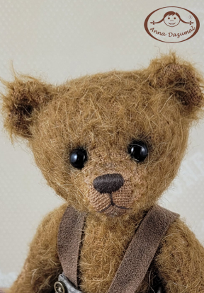 Quinn is made of Mohair in a wonderful brass color. Hand and feet are made of suitable felt, He has black German glass eyes, a stitched nose and is 5-way jointed. Filling: Fiber fill and steel pellets for a better weight.