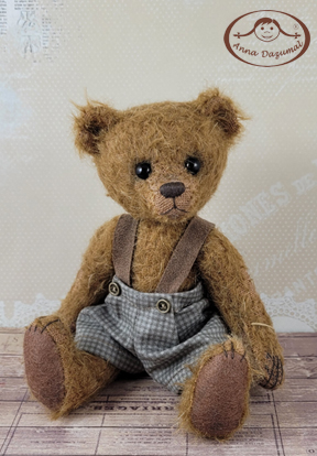 TeddyBoy Fritzi is made of Mohair in a wonderful brown color. Hand and feet are made of suitable felt, He has black German glass eyes, a stitched nose and is 5-way jointed. Filling: Fiber fill and steel pellets for a better weight.