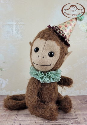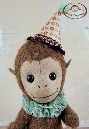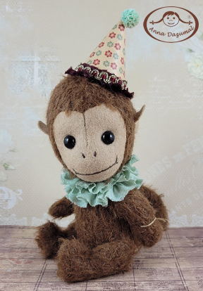 Mucki is a funny Monkeyboy, made of Mohair in dark brown. Filled with fiberfill and steel pellets for a better weight. The face is made of felt.