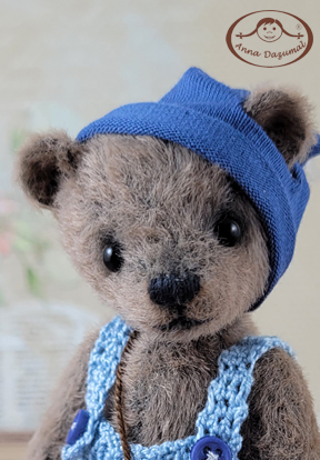TeddyBoy Fritzi is made of Mohair in a wonderful brown color. Hand and feet are made of suitable felt, He has black German glass eyes, a stitched nose and is 5-way jointed. Filling: Fiber fill and steel pellets for a better weight.