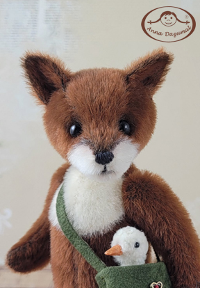 This is Fox Filus, my newest creation. He´s made of Long Pile in 2 amazing colors: main in redbrown and the muzzle is white. He has black German glass eyes and a stitched nose. Filling: Fiber fill and steel pellets for a better weight, 5 way jointed. The tail is wired and bendable. So he can stand alone.