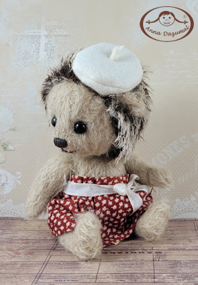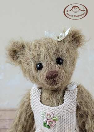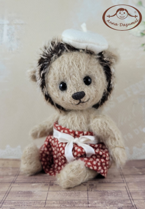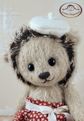In 1992 I started with the label Anna Dazumal®, this name describes the romantic character of the good old days I appreciate. It´s fascinating to get a lovely fellow by taking a piece of mohair, glass eyes and some more high quality materials. They all are 5 way jointed like the traditional way of bear making.