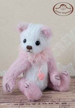 Most of my bears have lovely clothes or details, made of antique lace and fabrics. I love to create miniature bears as well as big bears to hug.