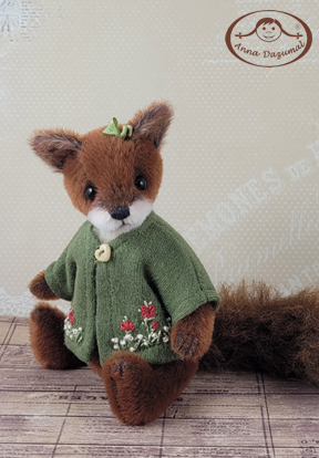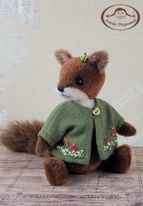 This is Fox Odette, my newest creation. She´s made of Long Pile in 2 amazing colors: main in redbrown and the muzzle is white. She has black German glass eyes and a stitched nose. Filling: Fiber fill and steel pellets for a better weight, 5 way jointed. The tail is wired and bendable. So she can stand alone.
