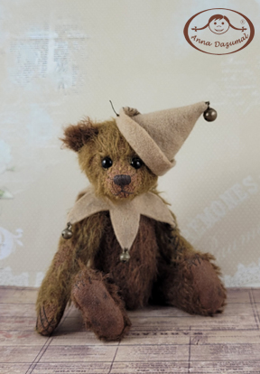 Pino ist aus Antikmohair in zwei schönen Farben: messing und braun. Hände und Füße sind aus passendem Filz. Er hat schwarze Glasaugen und eine gestickte Nase. Füllung: Stopfwolle und Stahlgranulat. Er kommt mit einem Zertifikat, in dem Namen und Geburtsdatum stehen.