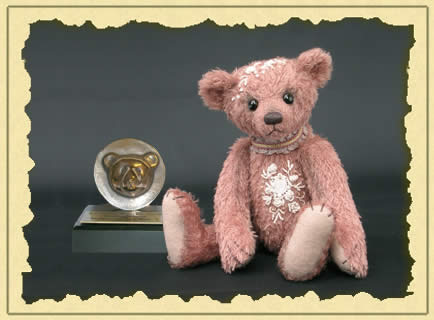 Daphne in rosenholz farbenen, wunderschönem Mohair dazu ein paar Blüten in creme von Hand gestickt. Fertig ist der Bärentraum. In Rheda-Wiedenbrück ist sie in der Kategorie Künstlerbär unbekleidet für den Goldenen George 2010 nominiert worden.