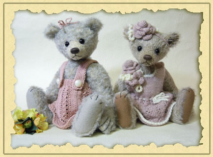 Die beiden Damen sind schick in Strick. Emmi, links, mag es eher schlichter. Ihr Rock hat ein duftig-zartes Muster. Henriette, rechts, liebt Blumen. Deshalb ist Ihr Kleid und das Haarband mit allerlei Blumen geschmückt.