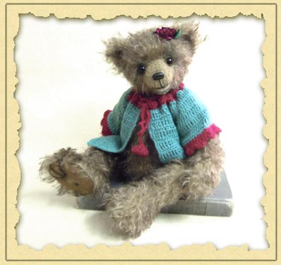 Sie hat durch das offene Mäulchen ein besonders ausdrucksstarkes Gesicht. Ihre Beine sind geknickt, sodaß man sie schön als Kantenhocker setzen kann.
