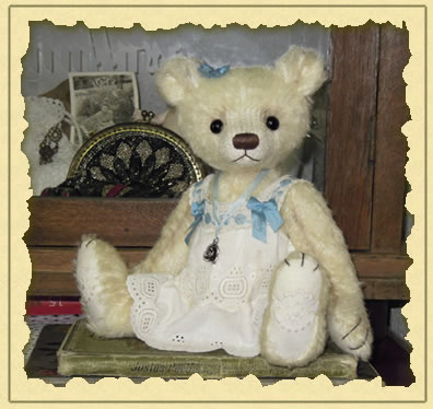 Ihre Füße sind auch mit schöner alter Spitze verziert.